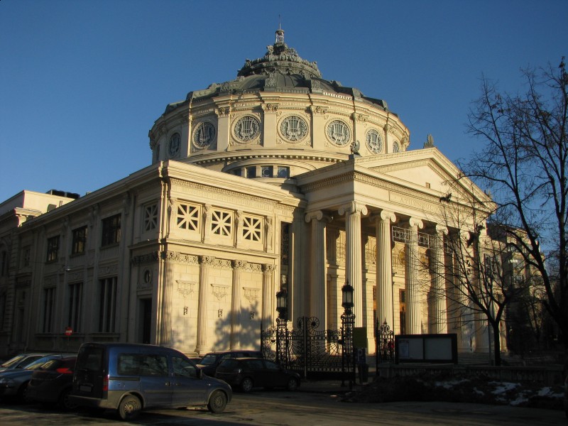 Ateneul Roman a fost construit in 1886-1888 pe strada Franklin nr.1, teren donat prin testament de contele Scarlat Rosetti, la initiativa doctorului Constantin Esarcu (1836-1898), istoricului Vasile Alexandrescu Urechia (1834-1901) si agronomului Petre S. Aurelian (1833-1909), care au detinut si importante demnitati politice in epoca. Acestia au infiintat la 28 ianuarie 1865, Societatea culturala "Ateneul Roman", cu sediul initial in casa lui Costache Ghica, langa gradina Cismigiu.