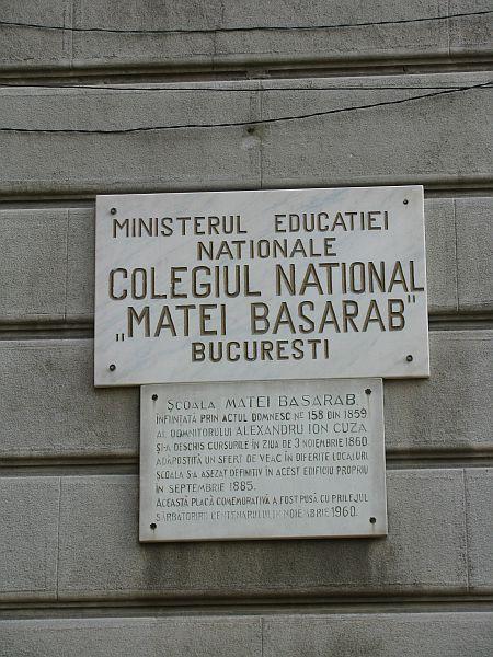 Placă comemorativă - Str. Matei Basarab 32-34 sector 3 pe zidul corpului central al Colegiului Naţional "Matei Basarab", municipiul BUCUREŞTI, Bucuresti